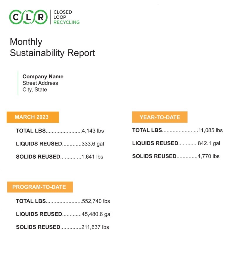 Unlike other companies, Closed Loop Recycling offers monthly sustainability reporting so you can see exactly how much your business is diverting from the landfill and conquer your business’s green initiatives